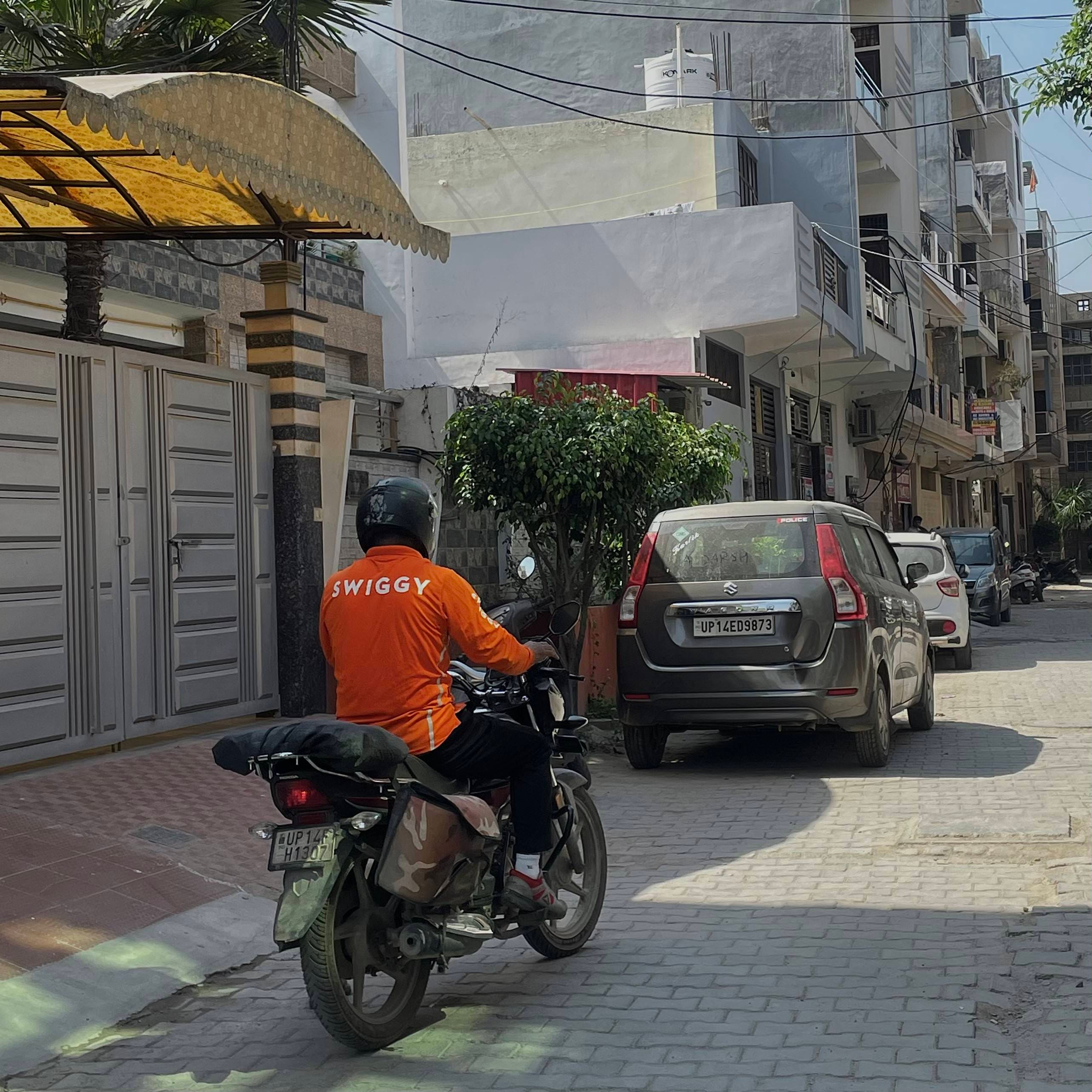 At 23, Aashish Kumar is constantly on the move—both on the roads of Ghaziabad as a Swiggy delivery partner and in his pursuit of a career in law enforcement. While his days begin with studying for the CPO exam, his evenings are spent navigating the city, delivering food to make ends meet. Coming from a lower income family, Aashish took up this job to support his family.