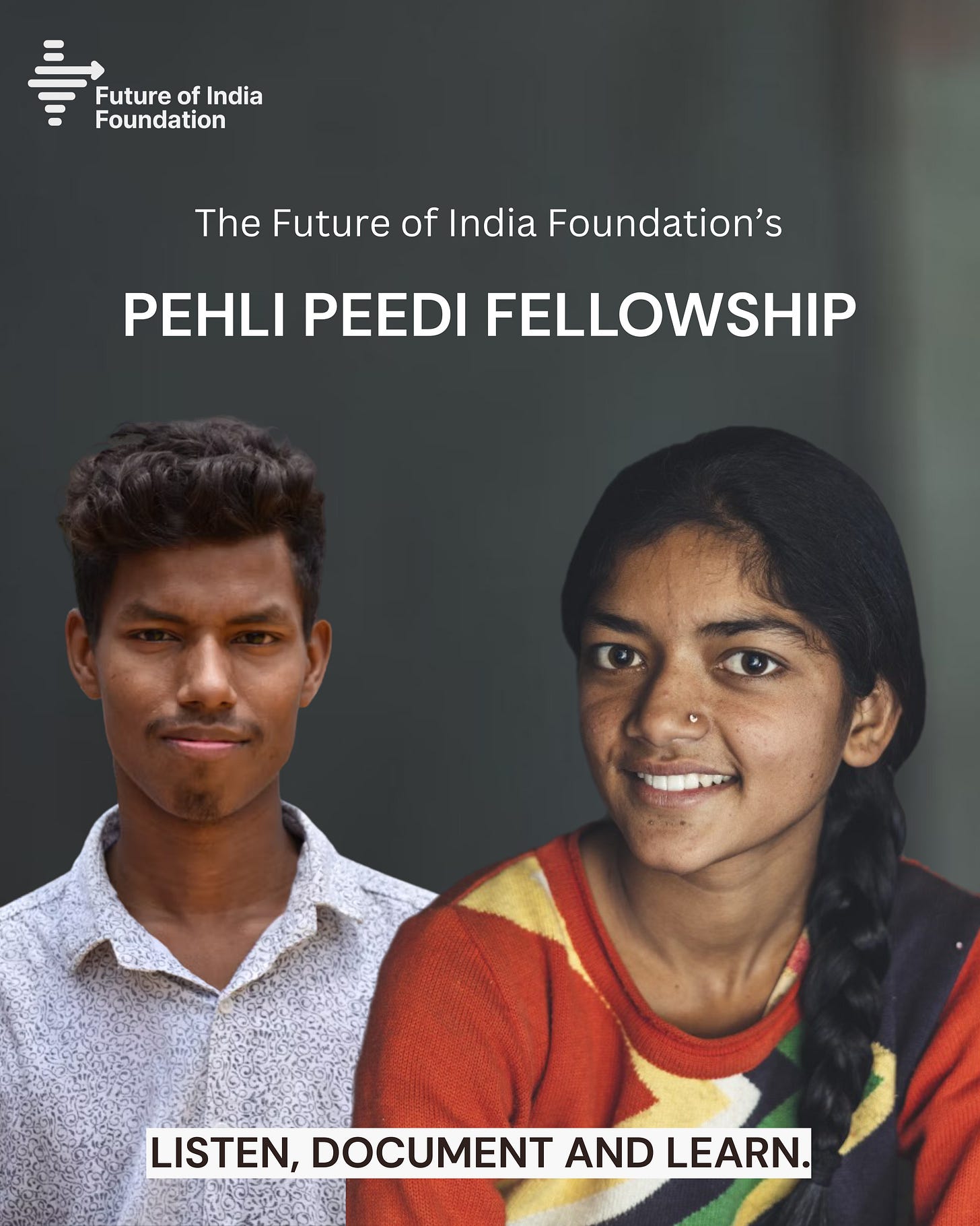 At the Future of India Foundation, we are committed to amplifying the experiences and voices of young people in our public discourse and decision-making. Fewer than 3 in 10 college-age Indians attend college today. Among them, pehli peedi - first-generation college students - stand at the sharpest edge of India’s social and economic transformation. Their journeys are marked by both aspiration and adversity, and we deeply respect their drive to build a better future.